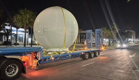 El traslado de la estructura, en forma cilíndrica y con unas medidas de 4 metros de ancho por 3,70 metros de alto, se ha llevado a cabo en la madrugada de este lunes con la colaboración de la Policía Local, ya que al tener que atravesar la ciudad era necesario realizarlo en condiciones óptimas con ausencia de tráfico de vehículos y personas.