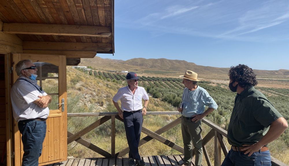 "Para transformar el monte desértico —agrega Rafael Alonso Aguilera—, construimos paredes de piedra, a modo de represas para retener el agua que baja por las cañadas cuando hay tormentas, con lo que evitamos la erosión y aprovechamos el agua que almacenamos en una balsa de agua transparente en la que hoy nadan patos, pues hemos introducido una alga que oxigena el agua embalsada. En los 80, sembramos 800.000 plantas, matorrales y árboles, de los que han prosperado más de 20.000 árboles y arbustos, no son muchos, pero estoy orgulloso de ver el verdor que producen, y la biodiversidad que generan. Hemos plantado 830 palmeras para resaltar los caminos entre los olivares. La finca y nuestra almazara disponen de instalaciones solares fotovoltaicas que producen más Kwh que los que necesitamos. Somos autosuficientes”.