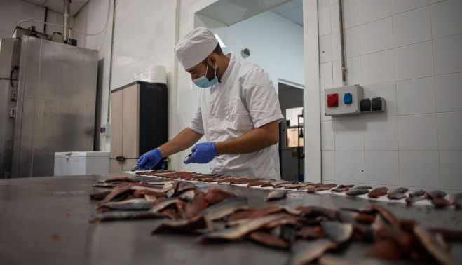 De madrugada, el pescado entra en la nave que Del'Aqua tiene en el polígono industrial Guadalete de El Puerto, donde se prepara el producto, se mete en un horno alimentado con virutas de madera de haya en el caso de que vaya a ser ahumado, y se envasa antes de partir hacia el cliente. Todo en menos de 24 horas, normalmente. "El pescado se obtiene el mismo día que se entrega, o el anterior como mucho", relata el gerente.