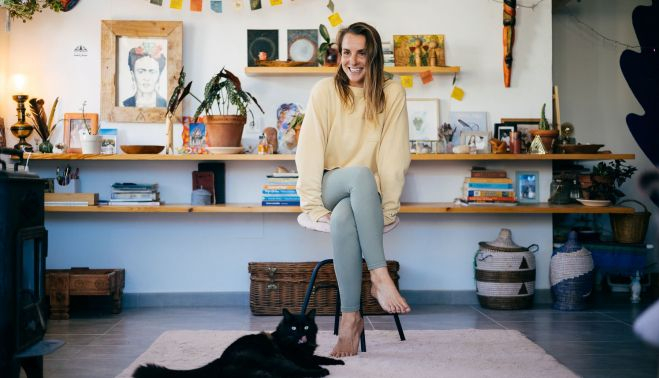 Pasó de tener un trabajo estresante en Nueva York a iniciar una búsqueda por distintos lugares del mundo. Al final, pensó que ese lugar estaría en España y una amiga que conoció en Bali le sugirió la idea de El Palmar. Empezó a mover hilos y en cuanto vio esta casa, supo que sería el lugar donde plantar la semilla: “Fue ver la casa y tuve un flechazo”, declara Mercedes. Ella es amante del yoga y en su anterior etapa laboral trabajó en decoración, alquiler de espacios y creación de contenidos para redes sociales con instagramers.