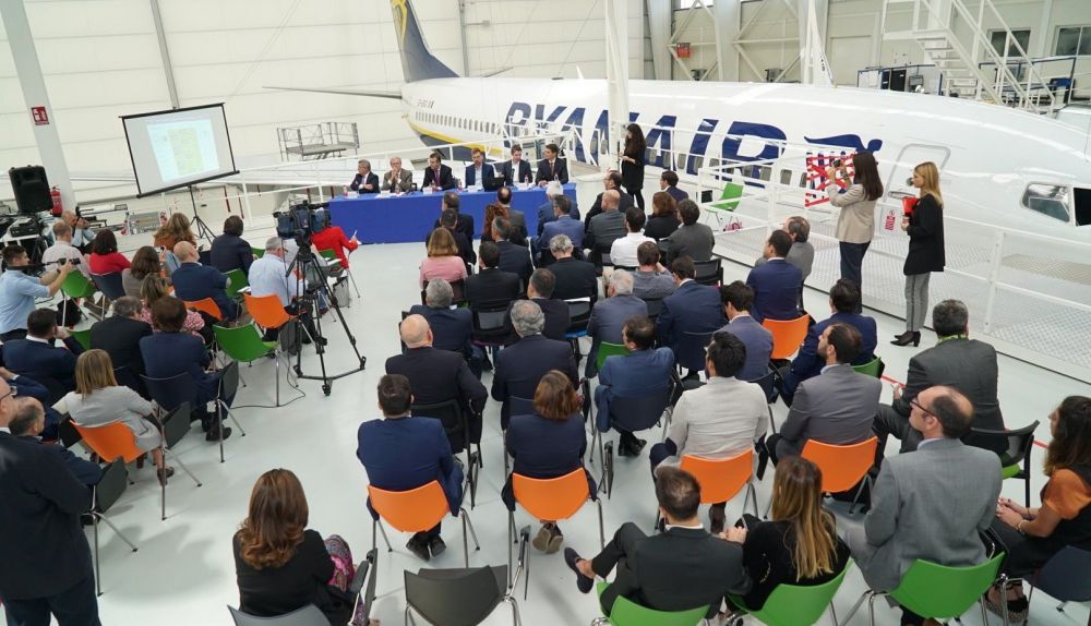 Ryanair ha inaugurado este jueves en la zona del aeropuerto de La Rinconada su primer centro de mantenimiento de aeronaves en España, instalaciones que llevan en funcionamiento desde enero, han contado con una inversión de más de 10 millones de euros y contratado a 200 profesionales de alta cualificación tecnológica que responden a perfiles de ingeniería, mecánica y personal de apoyo, acto en que la empresa ha desvelado la expansión del hangar, prevista en 2021, que sumará una inversión adicional de 16 millones de euros y la creación de 265 empleos, lo que elevará el gasto total a 26 millones y la creación de 465 puestos de trabajo.