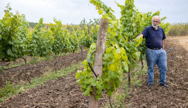 A más de dos kilómetros del núcleo poblacional más cercano, en un paraje a caballo entre la campiña y el mar, se encuentra la bodega y almazara ecológica Sancha Pérez. Para llegar hay que atravesar un camino estrecho, lleno de baches, durante el que hay que cruzar los dedos para no coincidir con otro coche. Siguiendo los carteles colocados durante el trayecto se llega a una finca de 24 hectáreas en la que hay viña, olivos, árboles frutales, plantas aromáticas y mucha vegetación. “Hay que tener mucha biodiversidad, tenemos más de 1.000 aromáticas”, dice orgulloso Ramón Iglesias, promotor y propietario de la empresa, cuando recibe a lavozdelsur.es. “Con estas plantas atraemos a la fauna auxiliar y eso nos ayuda a combatir las plagas”, explica. “Una mariquita se come 5.000 pulgones al año, pero no viene si no tenemos vegetación”.
