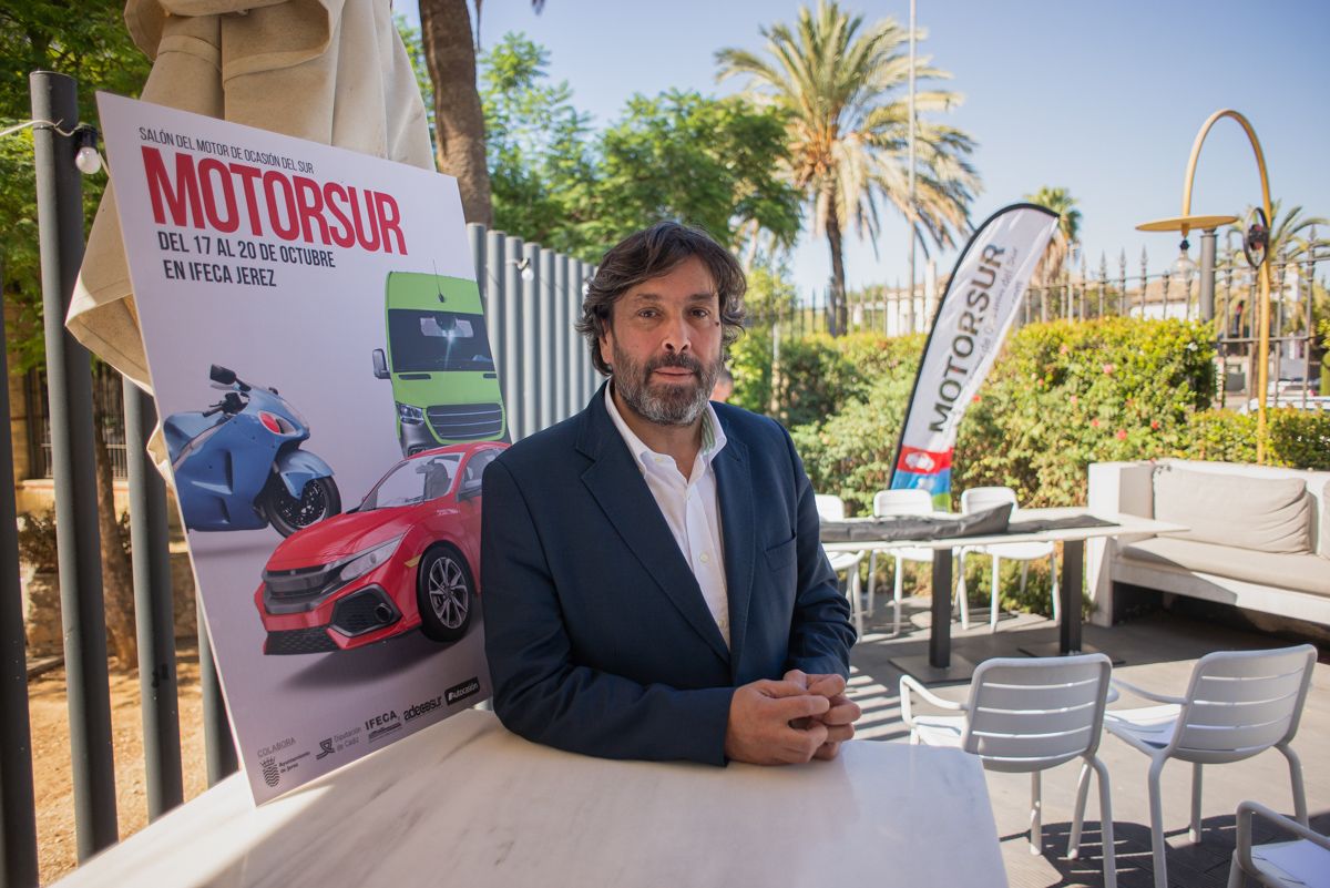 Landín atiende a lavozdelsur.es en Hontoria Garden Bar tras la presentación de Motorsur, el salón del vehículo de ocasión que acoge Ifeca y que cumple su quinta edición —del 17 al 20 de octubre—, en la que participan 25 marcas y unos 600 coches. El congreso, organizado por Expoalia —la empresa de Landín— en colaboración con Automociona.