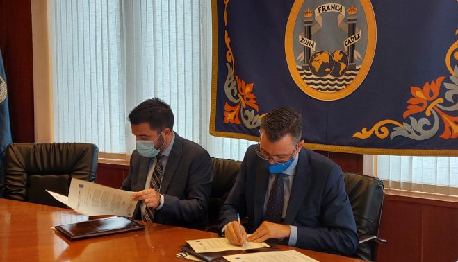 Incubazul, la incubadora de economía azul financiada con Fondos Feder que está desarrollando la Zona Franca, contará con la especialización de Telefónica para el crecimiento de los proyectos incubados. Así lo han ratificado esta mañana el delegado del Estado en la Zona Franca, Fran González, y el director general de Telefónica Territorio Sur, Joaquín Segovia, en el acto de firma del contrato celebrado en el Consorcio.