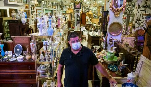 Juan Antonio cuida meticulosamente la alpaca, meneses, cobre, metal, limpiando los objetos desde una gran mesa. Después los coloca en los expositores, “si pongo una figura en el escaparate a 100 euros y pasa un tiempo que no se ha vendido, yo la bajo a 80, si no se vende la bajo a 70 y si se vende a 70 ese es su precio. Aquí es el mercado el que pone el precio, pero de 500 para abajo”, comenta el que asegura que el 60% de lo que entra por la puerta se lo lleva Hacienda.