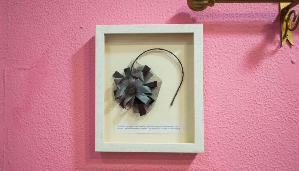 En octubre de 2010, su vida dio un giro. Esther le hizo un tocado a su hermana para la boda de su tío con los materiales que su madre guardaba de la mercería en la que trabajaba. “En esa época no me gustaban nada, que cosa más horrorosa, y le dije: -Te voy a hacer el que a mí me de la gana”, dice señalando aquella diadema con flor que ahora adorna las paredes de su tienda.