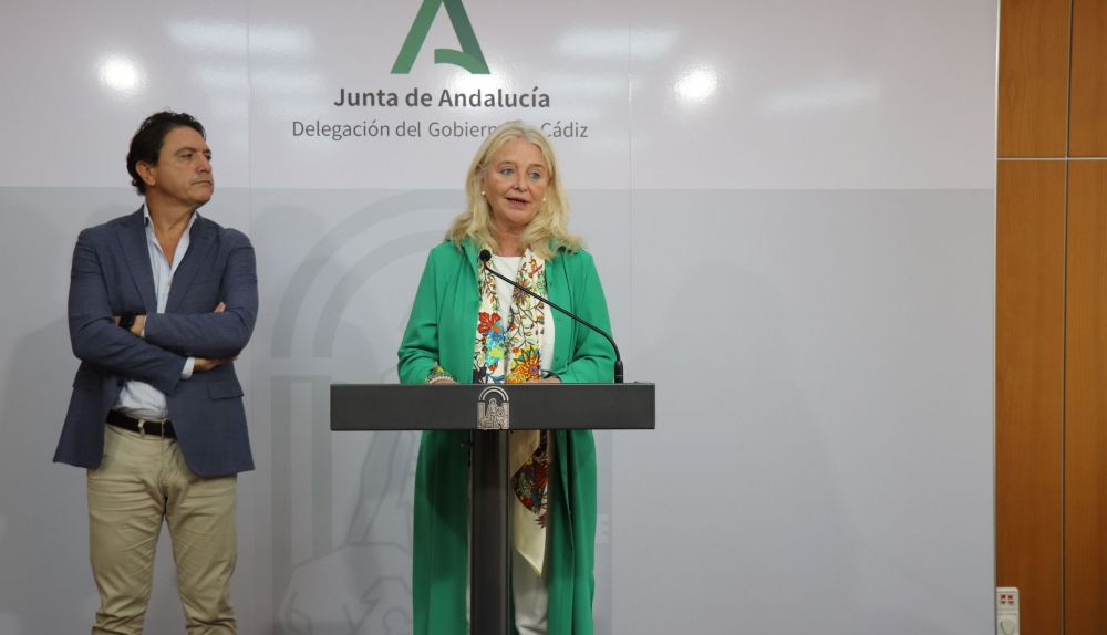 La delegada del Gobierno de la Junta de Andalucía en Cádiz, Mercedes Colombo y el delegado territorial de Empleo, Empresa y Trabajo Autónomo, Daniel Sánchez Román, han presentado este lunes en rueda de prensa los datos provinciales del programa de fomento de empleo Ahora Joven, desarrollado por la Consejería de Empleo, Empresa y Trabajo Autónomo.