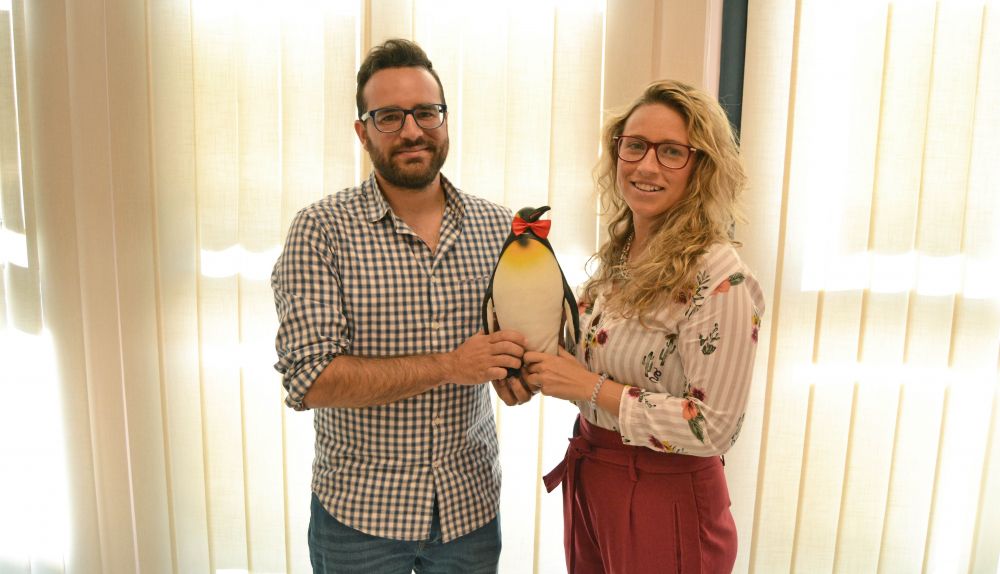 Después de dedicarse en cuerpo y alma a un "bebé empresarial" durante estos últimos nueve meses, ambos hacen un pequeño balance de cómo ha sido su experiencia inicial. "Yo me quedo con las palabras que le oí a otro compañero: Tengo sueño, pero no me cuesta levantarme por las mañanas. Trabajo en lo que me gusta y para mí es muy satisfactorio", resalta Alberto. Lidia comparte sus palabras, pero también incide en esa sensación agridulce de trabajar sin ver beneficios económicos durante un largo tiempo. "Es nuestro, y quiera que no, cualquier cosa que hacemos te satisface, pero esto tiene su parte dura". No obstante, en tan poco tiempo han trabajado con una veintena de empresas de Jerez y la provincia, de todos los sectores: desde hostelería, pasando por medioambiente, hasta juguetería. Para ellos el señor pingüino es su amuleto, como mascota que es, les acompaña a todas las ponencias para que no se quede solo. La gente lo abraza, lo estruja y se hacen hasta selfies con él. Es un gentleman. Y se podría decir que el señor de pajarita y sombrero se ha metido a todos en el bolsillo, que por las calles muchos conocen a la consultoría como "la empresa del pingüino".