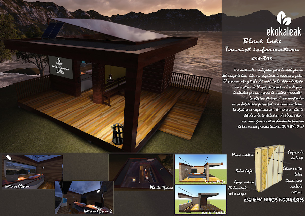 La propuesta 'Black Lake', un centro de recepción turística a base de recursos ecológicos realizada por el alumno Juan Pérez Gutiérrez del IES La Granja, cautiva al jurado del Premio Joven del Concurso de Ideas de Mobiliario Urbano 'Ekokaleak'.