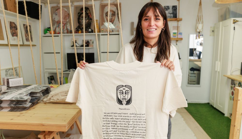 La vocación de Laura es poder potenciar los recursos del mar y utilizarlos para crear prendas, moda femenina sostenible que empieza por las camisetas. Como artistas y diseñadora gráfica que estudió Bellas Artes en Granada, en un principio, se planteó montar un estudio creativo donde, paralelamente, naciera una marca. “Cuando entré en la incubadora, me di cuenta de que era un proyecto demasiado grande y me quedé solo con la marca de ropa”, cuenta a lavozdelsur.es desde su estudio.