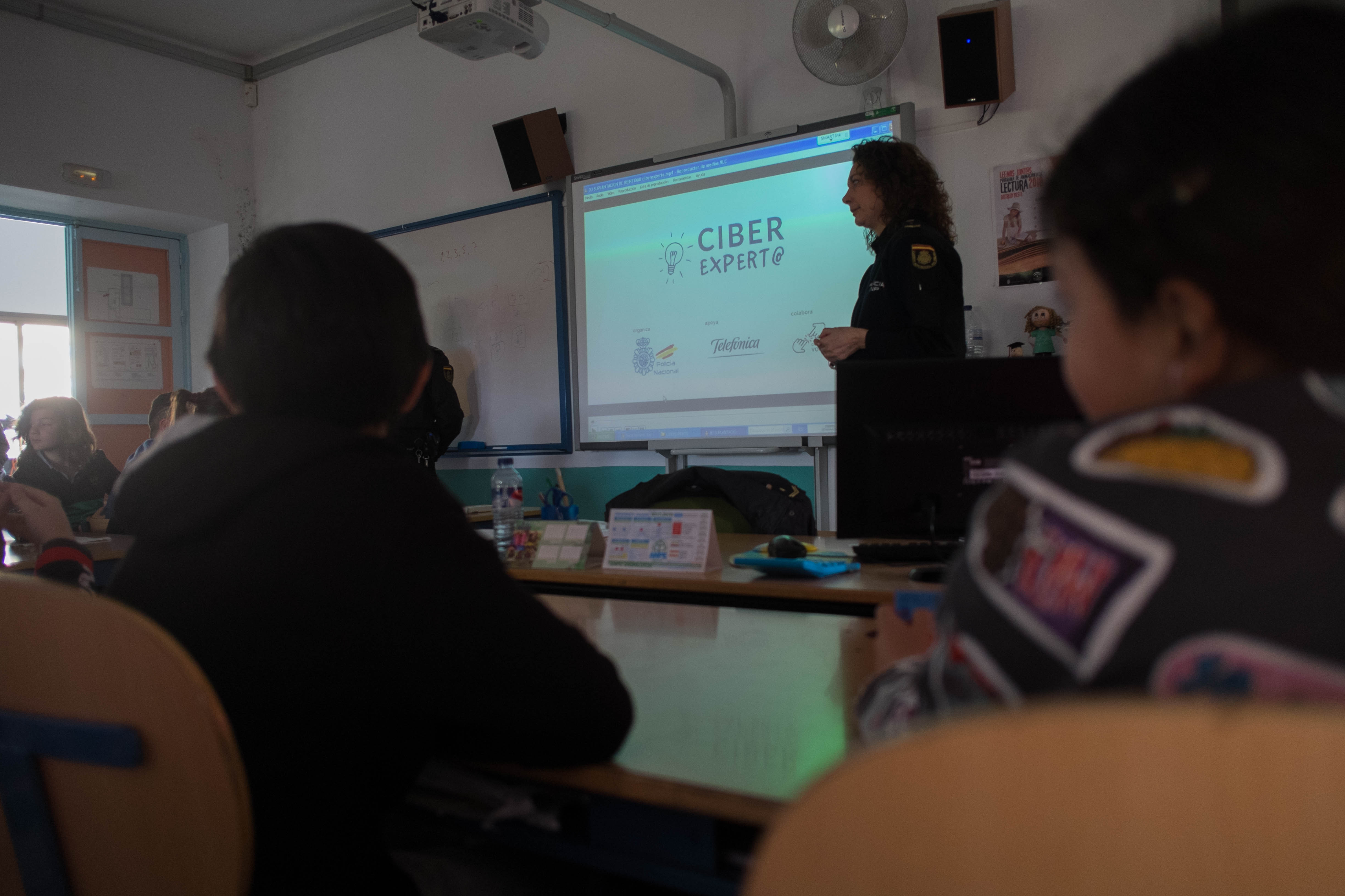 “Haciendo un símil con un coche, saben ponerse al volante y meter las marchas, pero no saben por qué carril deben ir ni los peligros de la circulación”, señala Adrián D. Bezares, delegado de Participación Ciudadana en la comisaría de Jerez, que junto a otros compañeros han iniciado una nueva edición del plan Ciberexperto, en la que, con la colaboración de Telefónica y de la Fundación Cibervoluntarios, imparten charlas a alumnos de Primaria para aportarles una visión más segura del uso responsable de internet, además de visualizar de manera real los riesgos y problemas que se pueden encontrar en la red.