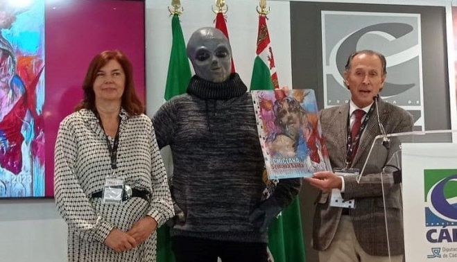 Chiclana ha aprovechado el escaparate que ofrece Fitur para presentar en Madrid su Semana Santa. Aun así, el acto ha sido más que peculiar ya que, junto al alcalde José María Román y el cartel anunciador de la fiesta se encontraba un marciano. Un personaje que no deja de ser peculiar a la hora de hablar de este tipo de eventos. El cartel representa al Cristo del Perdón de la localidad chiclanera a través de una obra realizada por Antoine Cas.