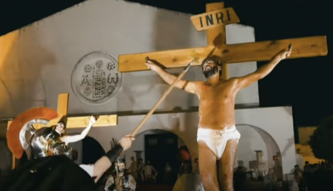 Según ha explicado el Ayuntamiento de Bornos en una nota, cerca del centenar de actores participan en la escenificación de la Pasión de Cristo, que se divide en distintas escenas. En concreto, por la Plaza San Juan de Ribera, empezando por la Entrada Triunfal de Jesús en borriquita, expulsión de mercaderes del Templo, traición de Judas, Santa Cena, Oración en el Huerto, Prendimiento, entrega a los Sumos Sacerdotes y Pilatos, Flagelación, Vía Crucis, Crucifixión, Muerte y Resurrección.
