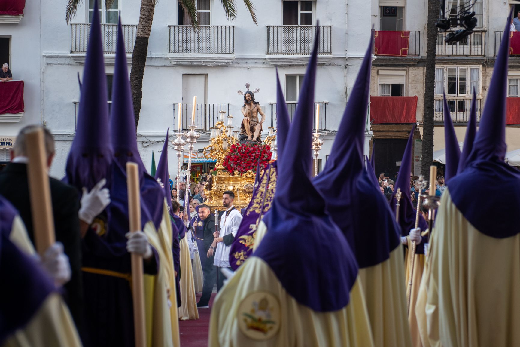 Cortejo de la Humildad y Paciencia cn su Cristo al fondo.