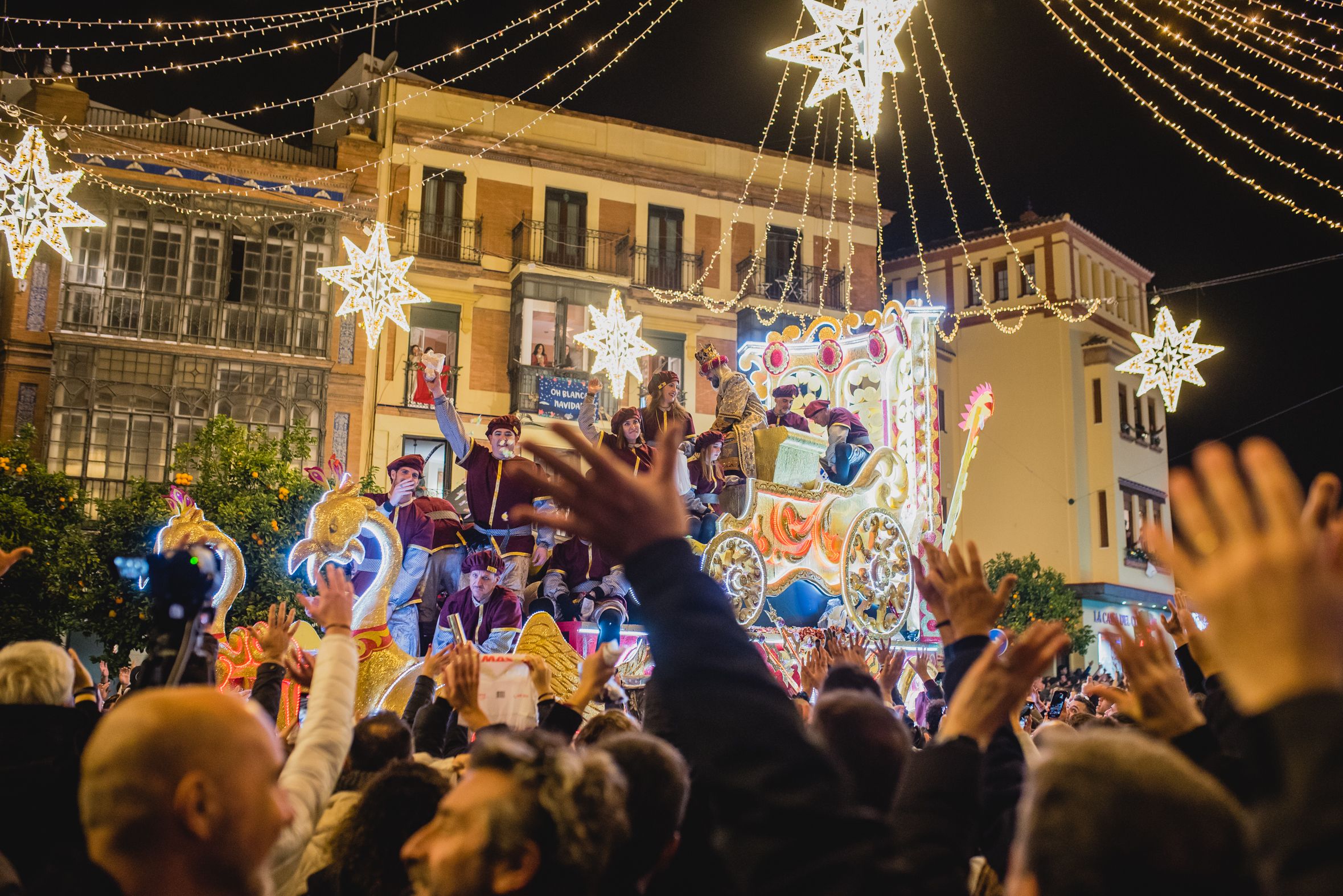 Los Reyes Magos al caer la noche en Sevilla, el año pasado, en imágenes.