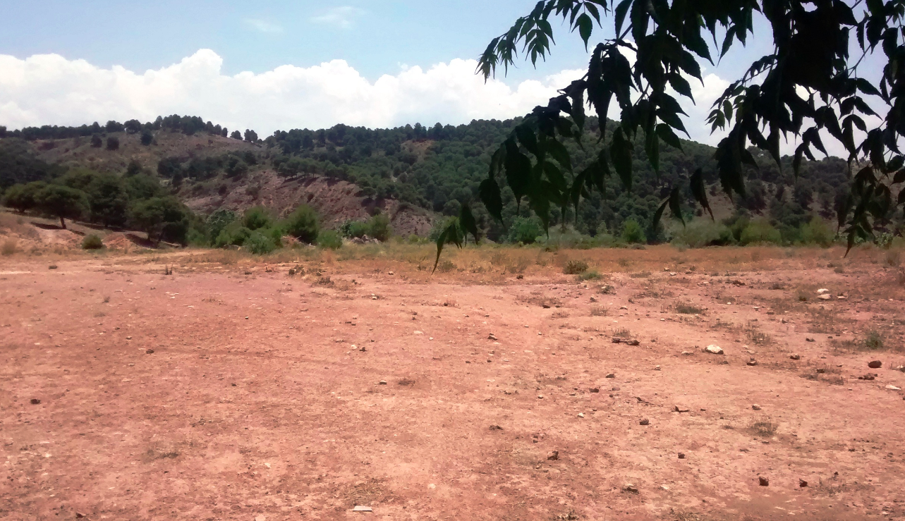 Hemos dejado la moto en el arcén, y seguimos a Miguel Caballero, subiendo una pequeña inclinación: dejamos, a la izquierda, un amplio cercado con un caballo solo, llegando a la derecha a un terreno totalmente llano, elevado sobre el nivel de esa carretera entre Víznar y Alfacar unos cuantos metros. Se trata del lugar que utilizaban las tropas radicadas en la plaza militar de Víznar para hacer instrucción durante la guerra, lindando ya toda esta zona con el frente: tras el levantamiento, los golpistas tomaron la ciudad de Granada, pero la provincia quedó cercada por los republicanos. Era, por tanto, una zona peligrosa, en la que no estaba permitido circular a los civiles. Era, también, toda esta zona (incluida la del parque que dejamos medio kilómetro atrás), el lugar donde se traía a los prisioneros rojos para ser ejecutados y enterrados en fosas comunes. Centenares, o miles de muertos, siguen escondidos bajo estas tierras.