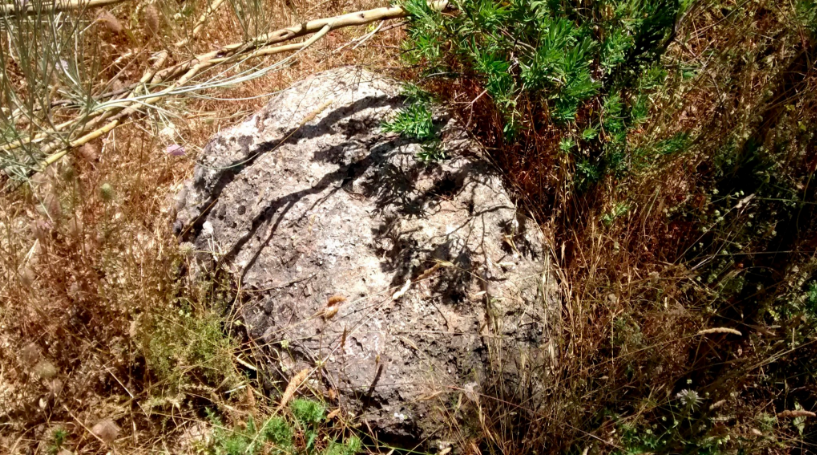 Dejamos atrás el parque García Lorca de Alfacar, avanzamos (en moto) por la carretera que lleva a Víznar, pero a escasos metros nos detenemos en el arcén y nos internamos en una zona agreste, a la izquierda de la carretera. Caballero quiere ilustrarnos con otra de las leyendas, según la cual “un tal Valentín” decía que lo habían enterrado aquí, en la zona llamada del Almencijar: “Decían que aquí había una piedra, y que en la piedra había tallada una cruz, y que eso significaba que había una fosa. Así que yo te voy a enseñar la piedra, para que veas tú los disparates”. “A los de la Asociación de la Memoria Histórica les dijo la consejera de la Junta de Andalucía que aquí; las cosas de la política... Nosotros pasamos el radar y claro que no hay nada”.