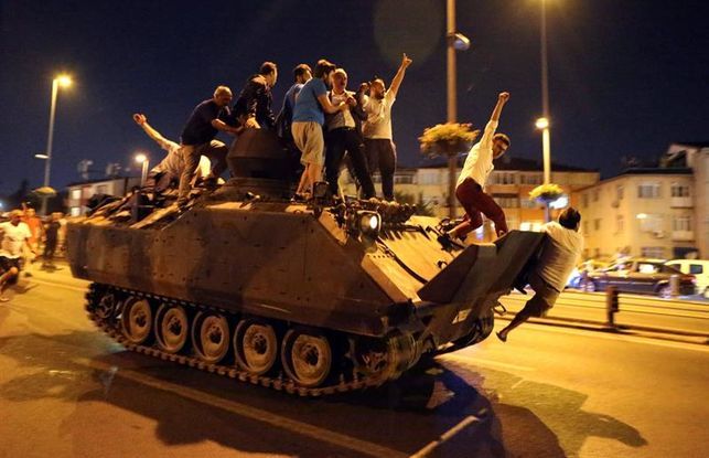 Al grito de Allah'u Akbar y entorno a las cinco de la madrugada, los islamistas y seguidores del Partido para la Justicia y el Desarrollo (AKP), que lidera desde hace más de una década Recep Tayip Erdogan, —conocido como El Sultán de Europa— se dirigieron al mausoleo donde se encuentra enterrado Mustafa Kemal Atatürk, el que es considerado Padre de la patria turca. El Anit Kabir, símbolo de la destreza militar del país, se convirtió entonces en un mar de banderas rojas, al mismo tiempo que en Estambul una muchedumbre enfurecida se enfrentaba a los tanques militares en las inmediaciones de la plaza Taksim.