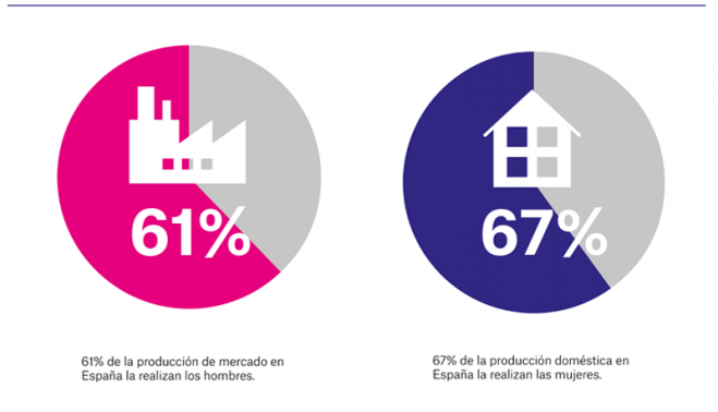 Mientras que los hombres son responsables del 61% de la producción de mercado, las mujeres realizan el 67% de la producción doméstica. Constatando cómo el aumento del acceso al mercado de trabajo de las mujeres no implica necesariamente la igualdad de género dentro del hogar, a menos que culmine el proceso de cambio cultural acompañado de un esfuerzo para equilibrar el cuidado de la familia mediante políticas públicas.