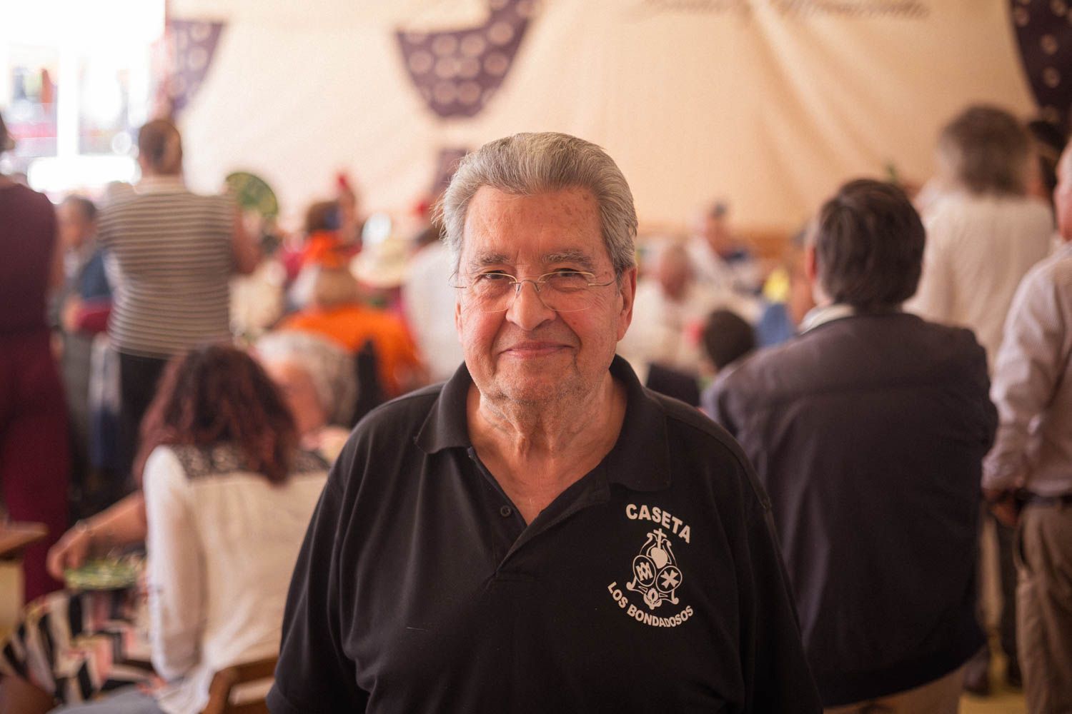 Pepe Valle, de 80 años, lleva vinculado a la hermandad de la Misericordia y su caseta en la Feria desde hace al menos 20 años. A pesar de su edad, asegura que sigue ahí "mientras aguanta el cuerpo". Relata que la hermandad comenzó hace ya varias décadas, cuando algunos de los miembros actuales tenían apenas 13 o 14 años, y hoy muchos de ellos rondan los 50 años. Pepe se considera uno de los miembros más nuevos dentro de la hermandad, aunque también es uno de los mayores en edad.