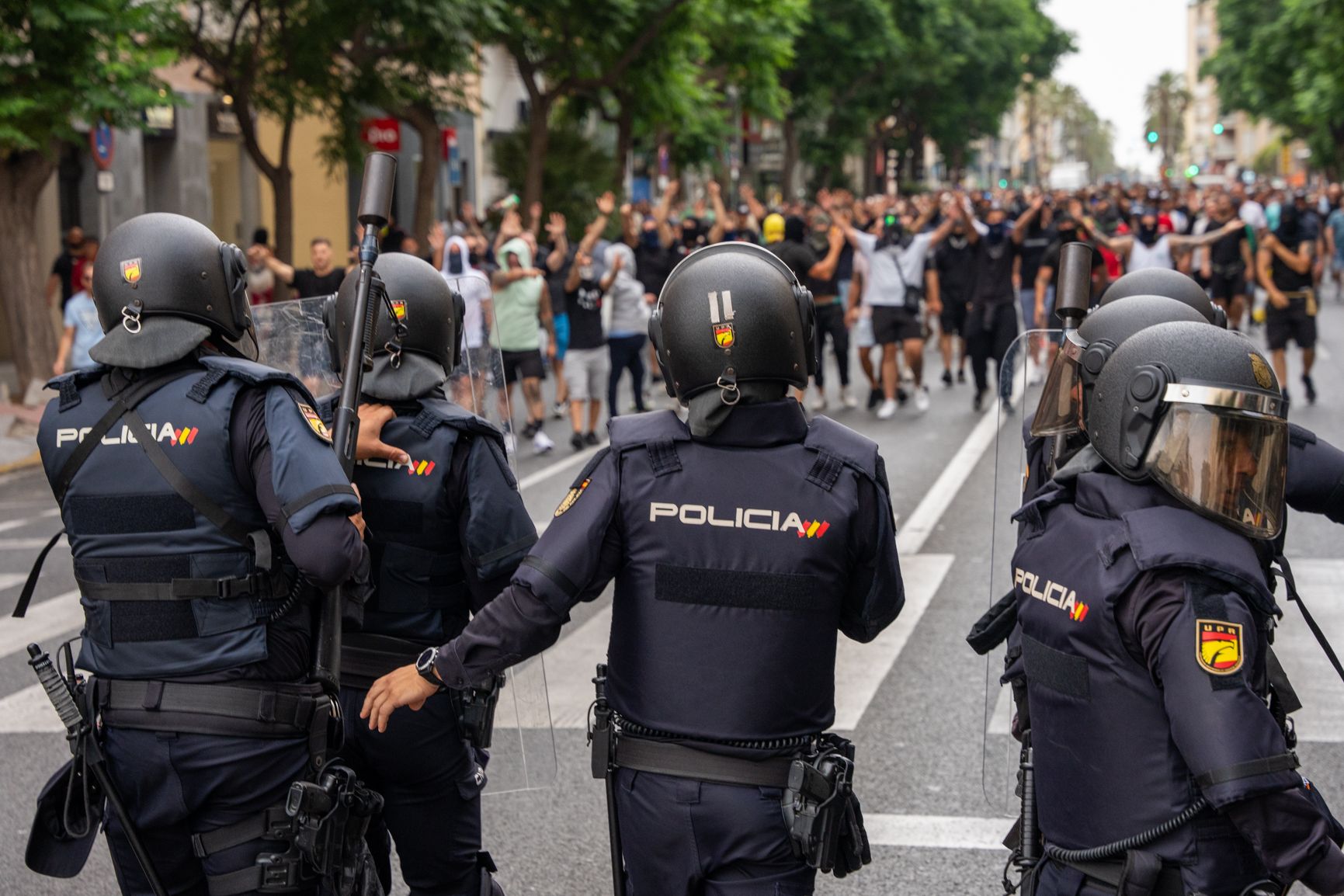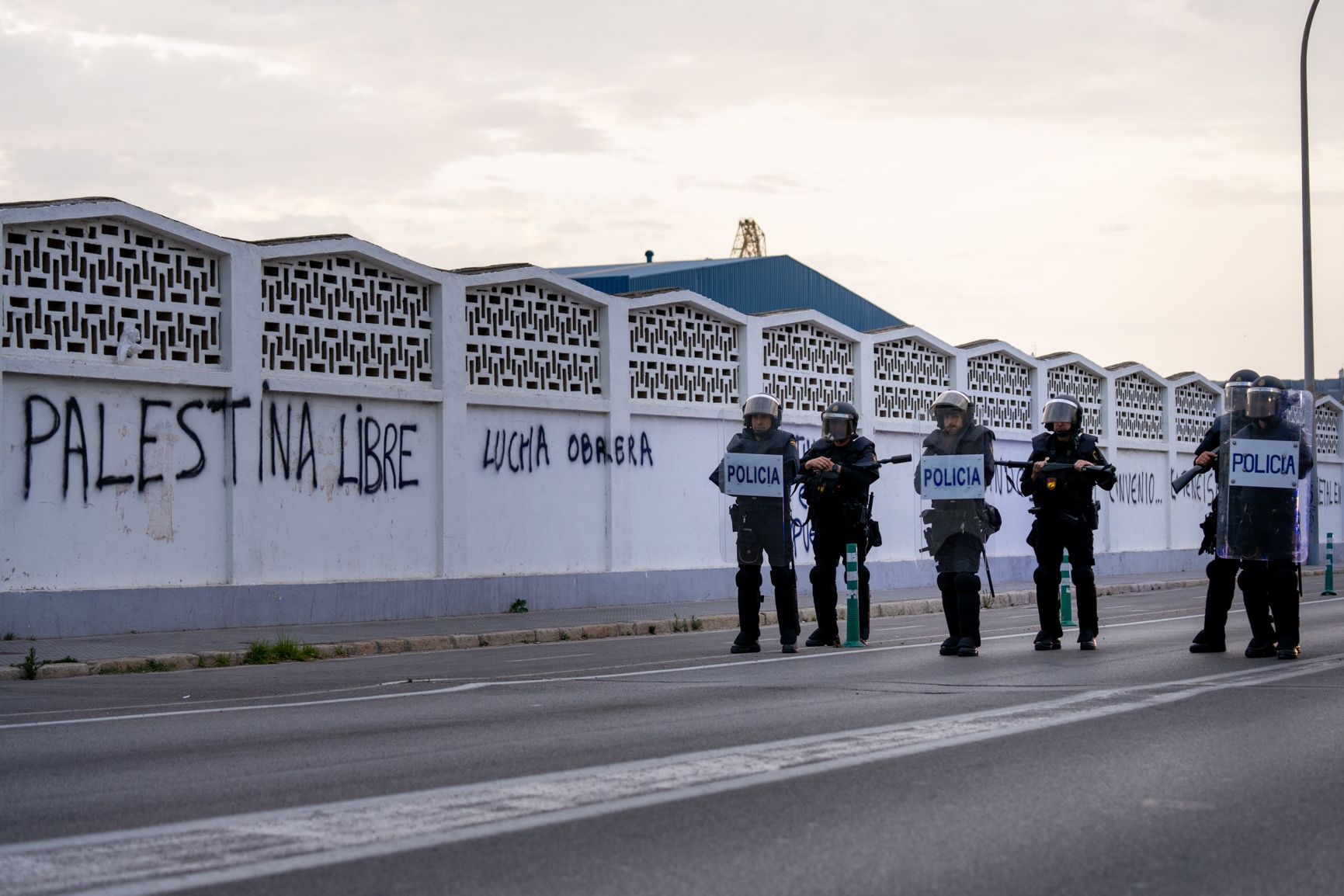 Agentes de la Policía Nacional desplegados en la carretera industrial