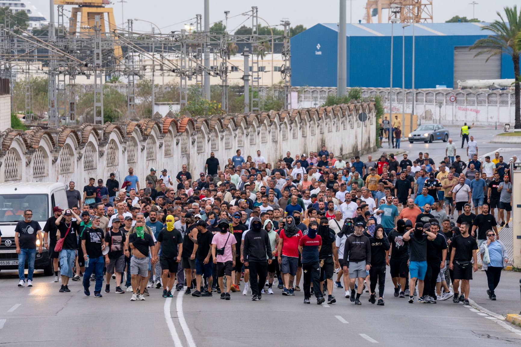 Manifestación en la carretera industrial en dirección a los barrio obrero, dentro de la jornada de protesta del sector