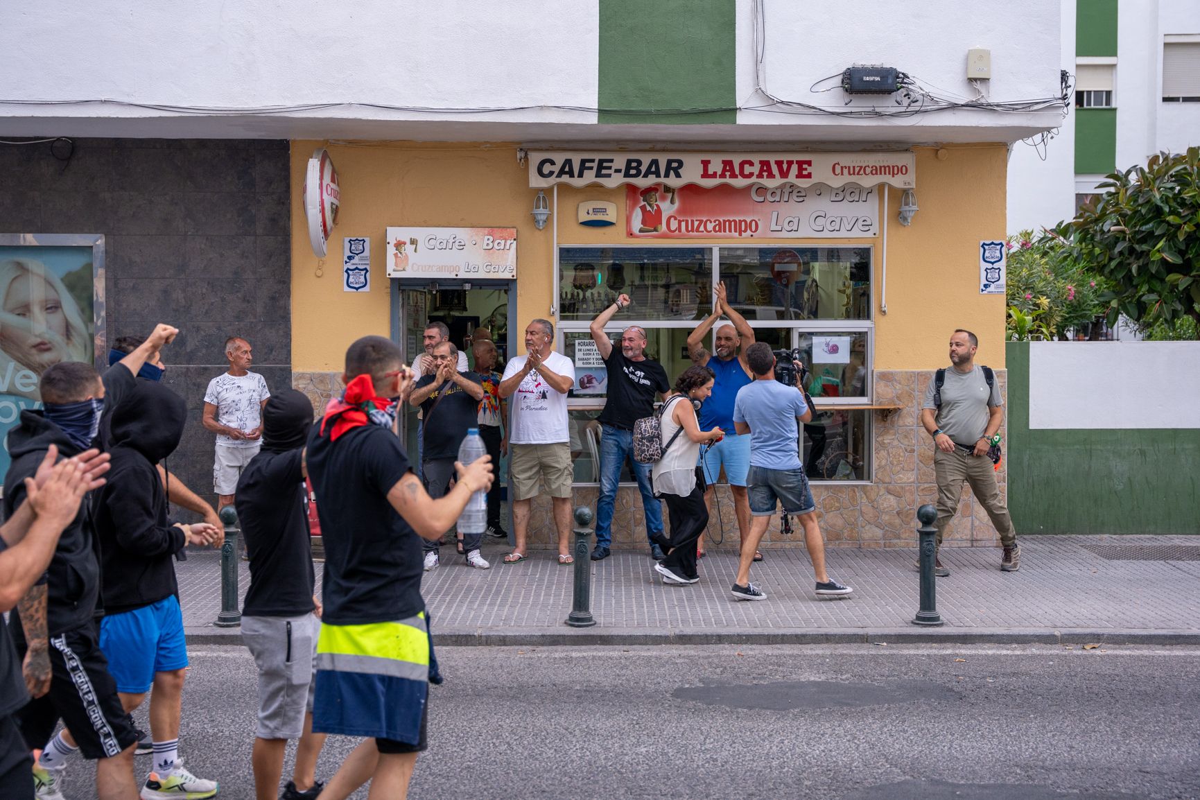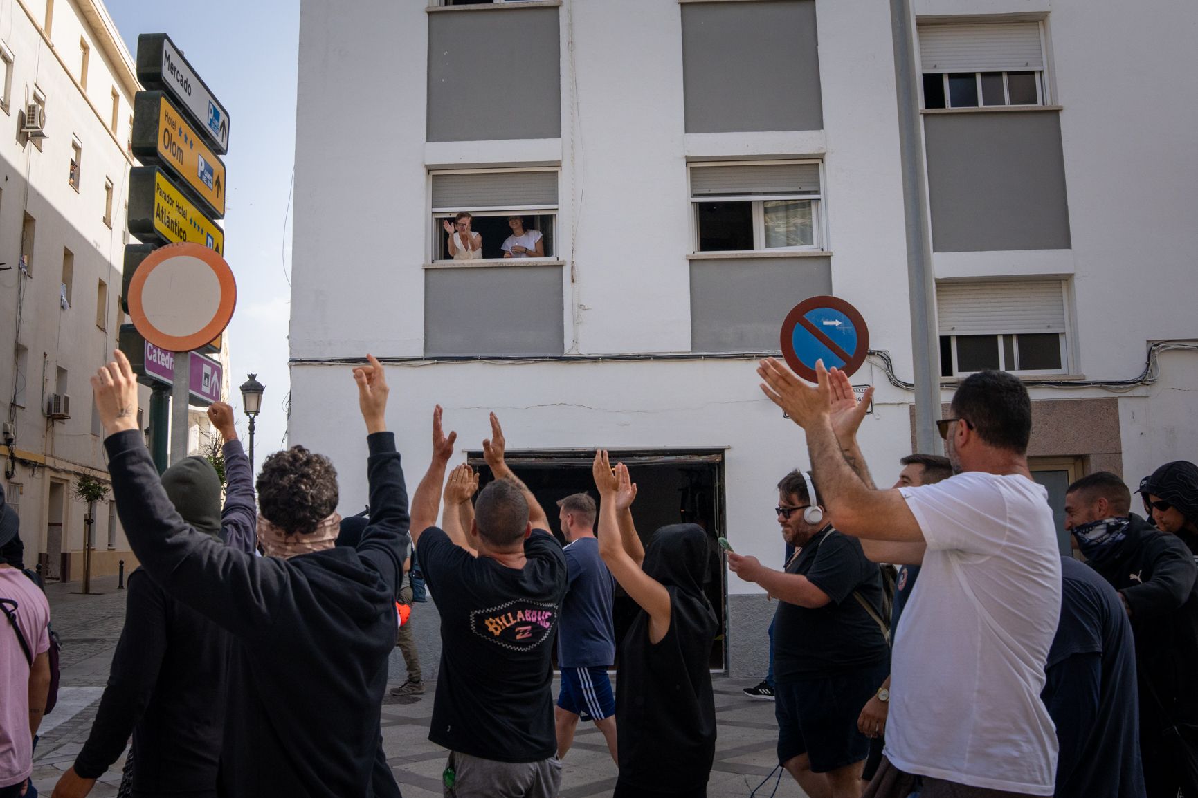 Vecinos del barrio del Cerro del Moro aplauden al paso de la manifestación del sector del metal en señal de apoyo.
