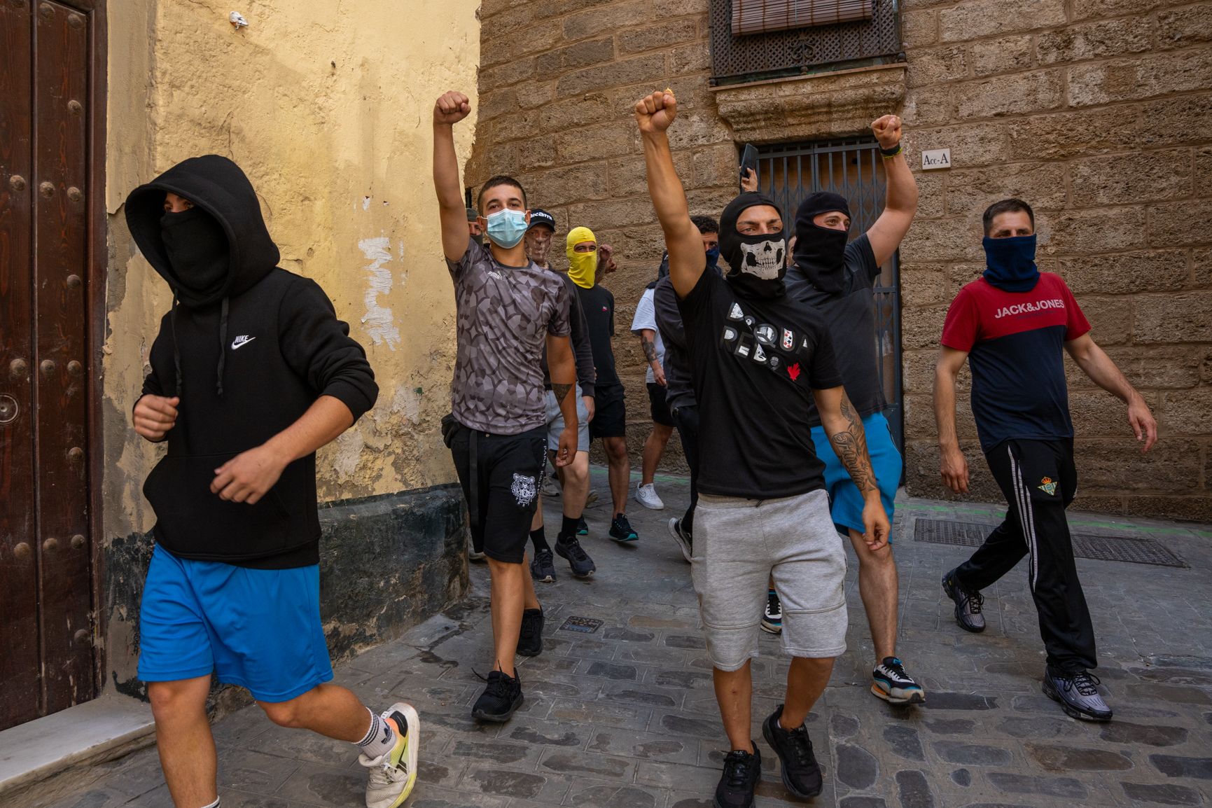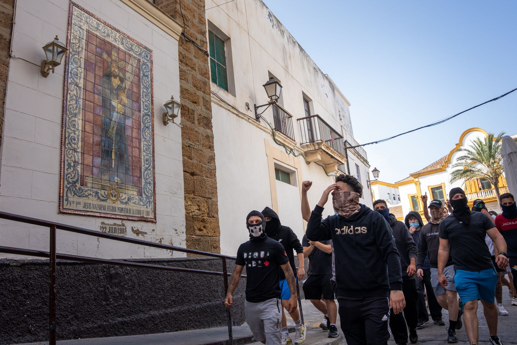 Manifestantes del metal en el barrio de Santa María de Cádiz en la huelga de junio.
