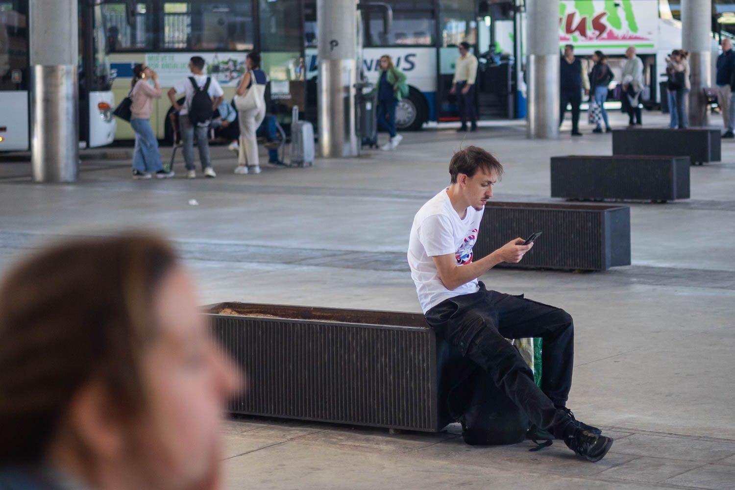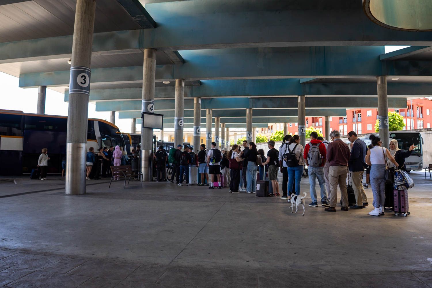 Viajeros tomando el autobús tras el desalojo de la estación de trenes.