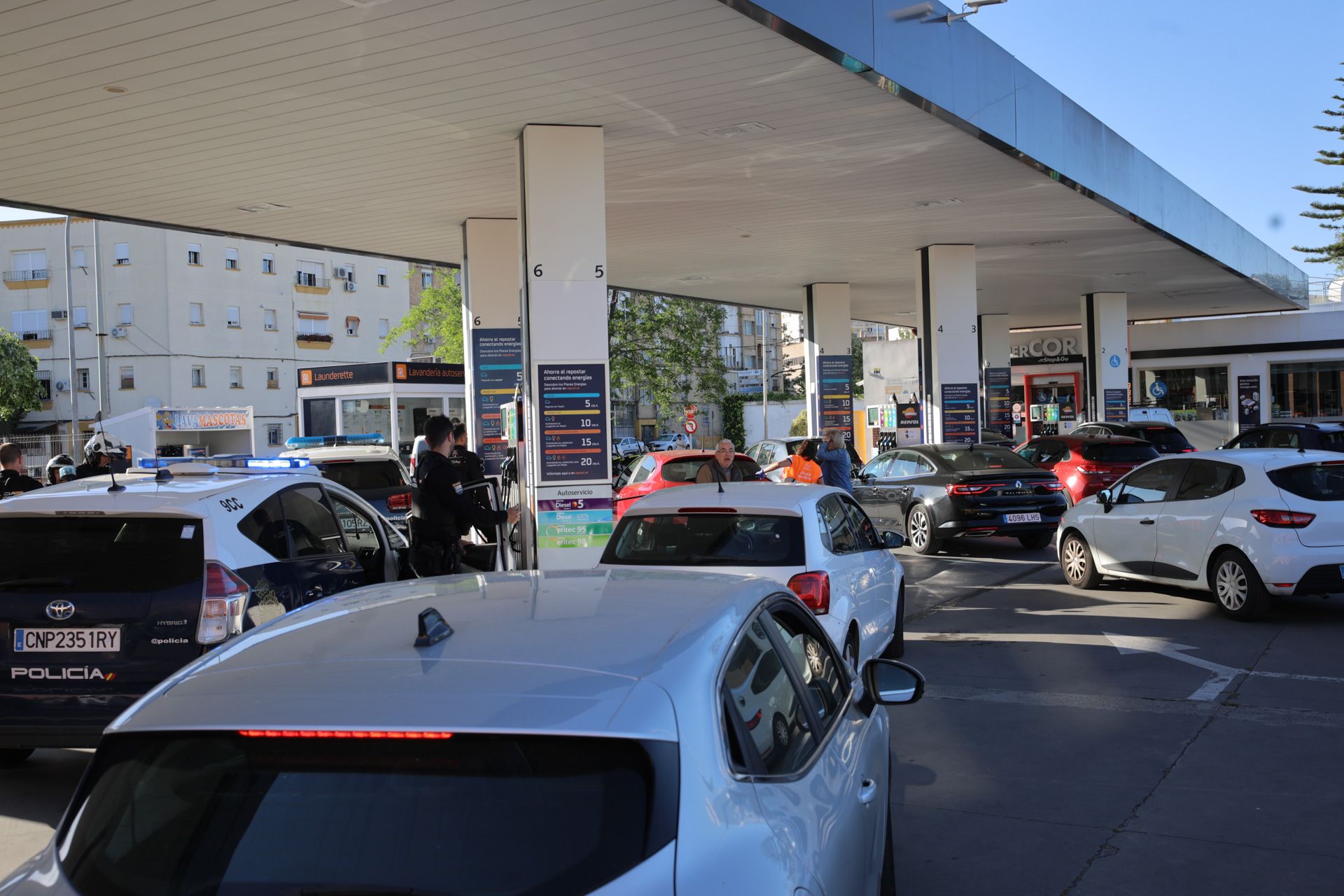 La gasolinera de Martín Ferrador atestada de coches esperando para repostar.