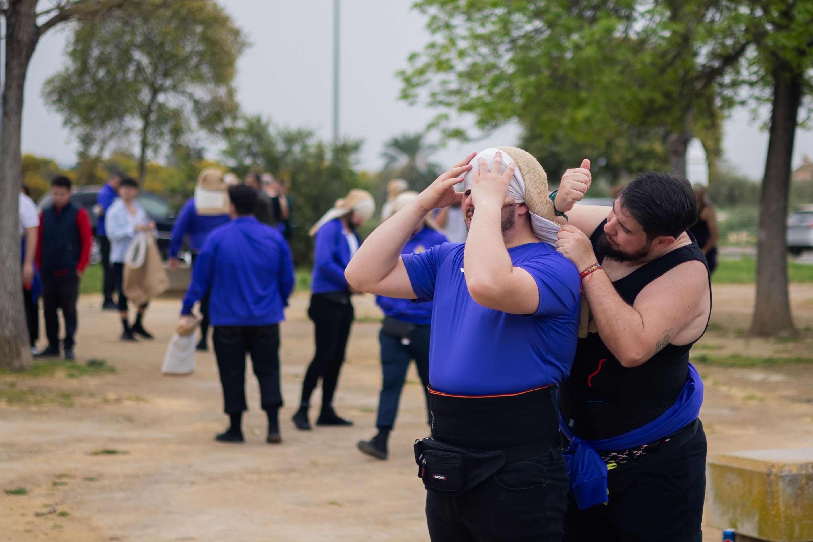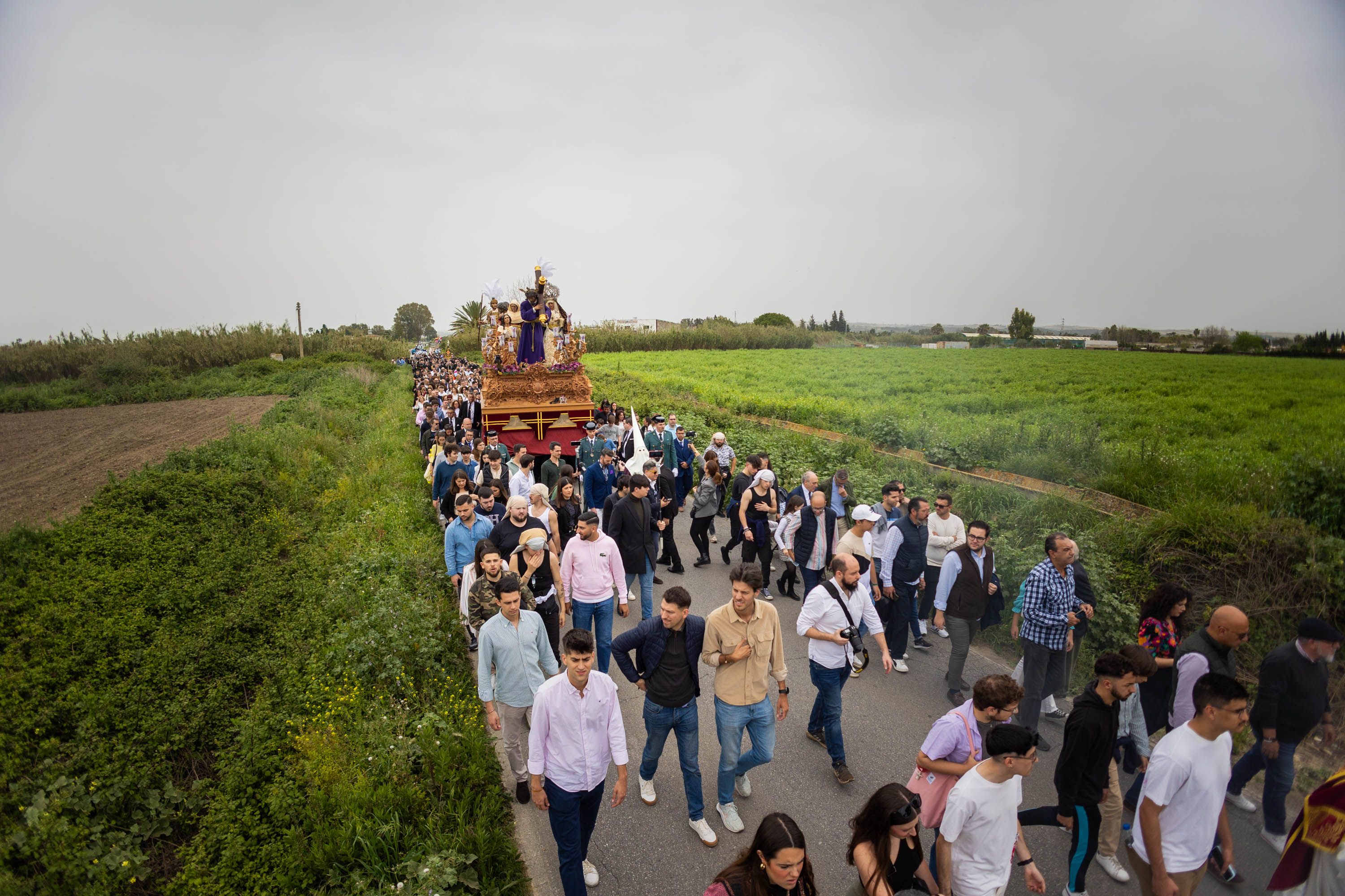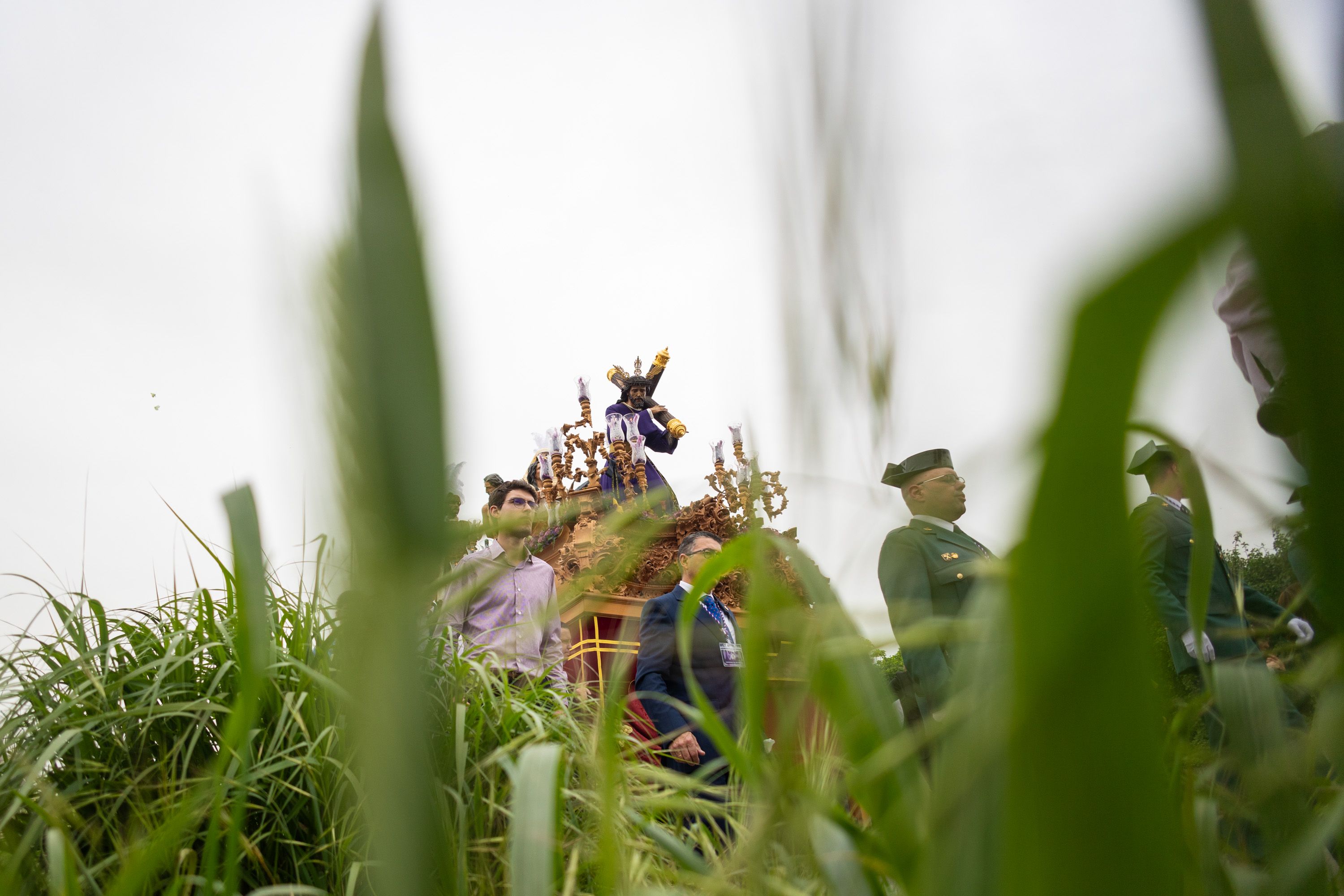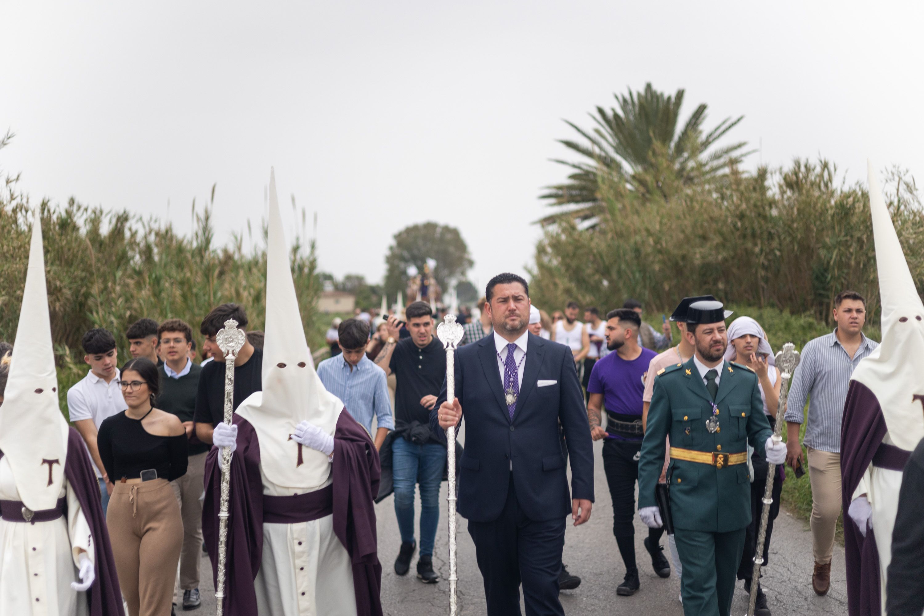Nazarenos de La Entrega el pasado año a su paso por la carretera de Guadalcacín.