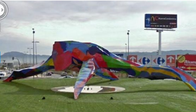 En el listado de rotonda feas figura en primer lugar una colocada en Murcia, de la firma sueca Ikea. Imposible describirla con palabras. En las fotos se observa cómo es la obra. Un tiranosaurio que hay en Burgos, la patata atómica de Amorebieta-Echano (Vizcaya), unos pájaros hechos con señales de tráfico (Jaén), una escultura de Las Meninas (Leganés), un osito de gominola (Boadilla del Monte, Madrid) o la de las manos (Rota), son algunas de las piezas que completan este singular ránking.