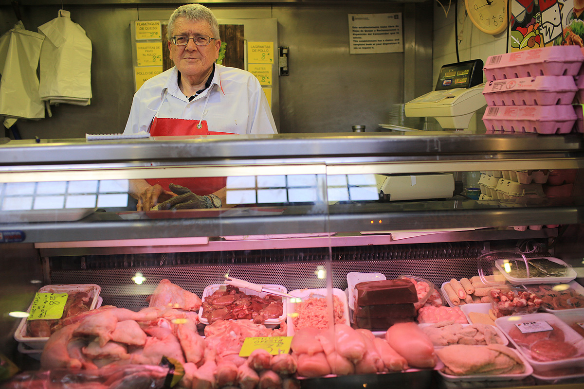 Paco Fernández, que de Icovesa pasó a vivir en Montealto, tiene 65 años y desde 1985 tomó el relevo a su madre al frente de su recova. "Ella se tiró más de 40 años en la Plaza". Las arrugas surcan su rostro, mientras sujeta el cuchillo con ese guante de cota de malla como si hubiera llegado de cualquier batalla de Juego de tronos. Pero Paco no piensa jubilarse por ahora: "Tengo que cotizar más". El producto fresco inunda su puesto, de los más antiguos de la zona de carne y recova. El trabajo es arduo y desde los albores del día. Los márgenes, estrechos. Apenas hay competencia entre negocios: "Nos llevamos bien, nuestros productos perecederos tienen márgenes mínimos, la ganancia es de un 5 o 10%, y prácticamente no puede haber competencia porque todos vendemos al mismo precio".