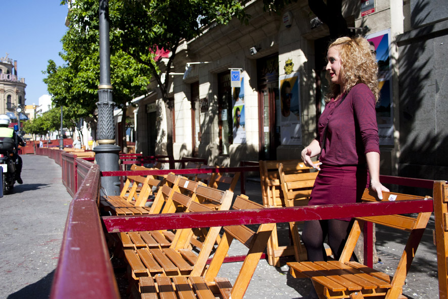 En las proximidades de la Plaza del Arenal, una joven que prefiere no dar su nombre, señala que “yo hago este trabajo porque la Semana Santa me gusta y es otra manera de disfrutarla. Reconozco que es una pena que esta ciudad, con las ventajas que tiene, tenga una tasa de paro tan alta como la que tiene, y personas que han trabajado durante muchos años en sus diferentes sectores, tengan que prestar estos servicios para sobrevivir”.