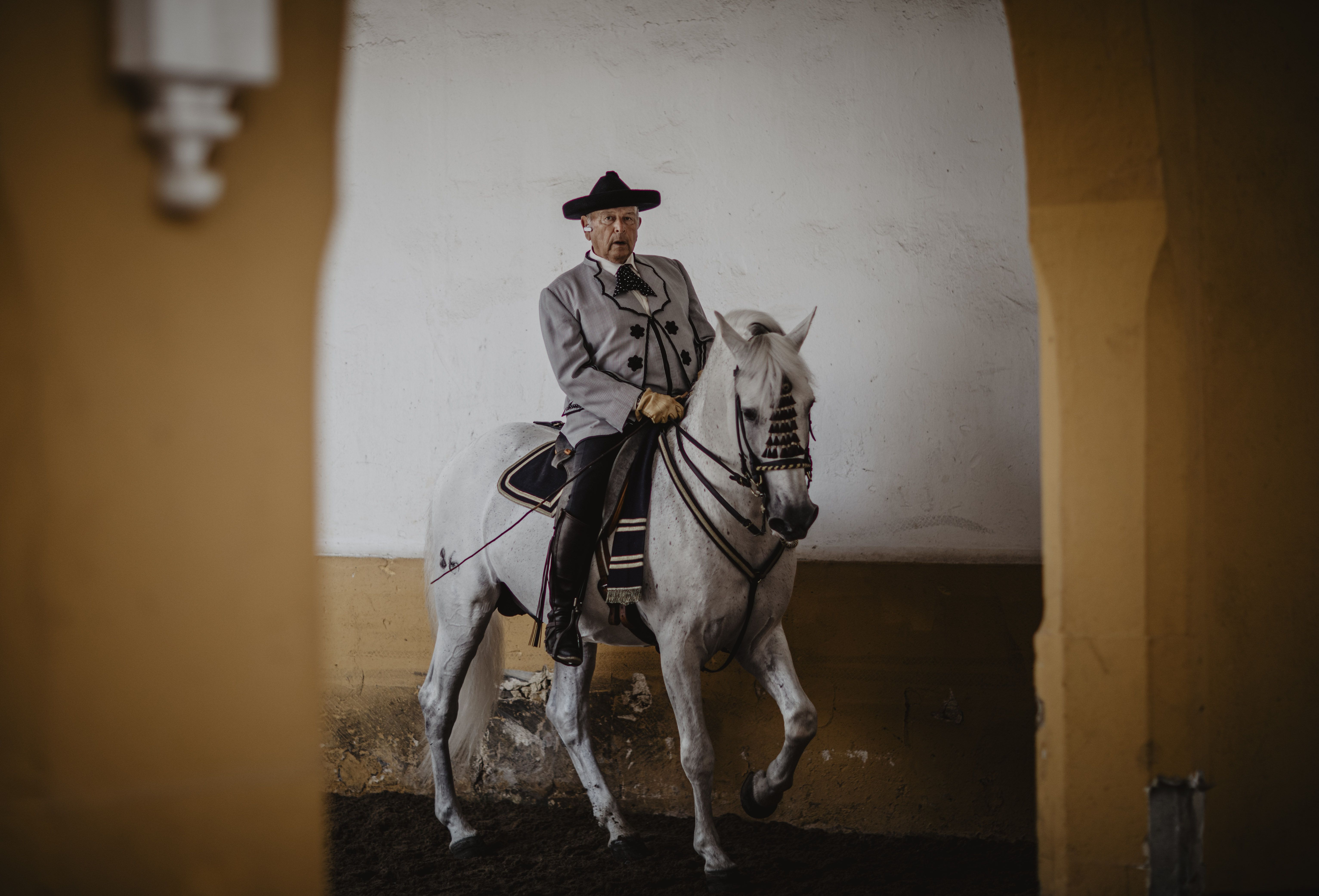 Me duele mucho el cuerpo, pero cuando estoy en el caballo, el cuerpo no recuerda. Ha sido mi pasión. Aprendí de pequeño, yendo con mi padre al campo. He pasado muchos años con caballos toreros, he recorrido el mundo a caballo. He estado en el Madison Square Garden de Nueva York con mis caballos. He tenido éxito en Argentina, en Viena… Allí me fui porque cuando llegué a la Real Escuela sentía que tenía que prepararme para dirigirla. Tengo ahora aquí un caballo que hace unas cabriolas muy bonitas… Después sale uno fuera y hay que presumir de buenos caballos.