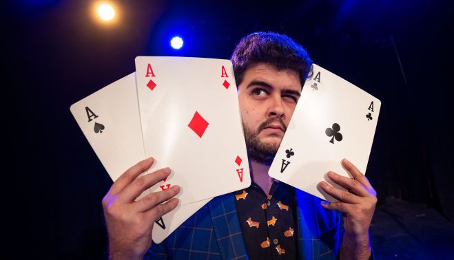 Desde los diez años pisa los platós de televisión. Ahora tiene 28. Antonio Serrano (Chiclana, 1995) nació para ser artista. Ama la música desde niño, se declara carnavalero sin remedio; se escucha absolutamente todas las agrupaciones del COAC (Concurso Oficial de Agrupaciones Carnavalescas) del Falla. Hoy es profesor de filología y mago. Pero también podría decirse que es humorista, letristas de las agrupaciones callejeras en Chiclana, la ciudad que le vio nacer, y un montón de cosas más. En septiembre del pasado año, el jurado de Got Talent le dio el pase de oro por su actuación como mago, donde, una vez más, sacó a relucir su absoluto descaro, su frescura y su bonhomía.