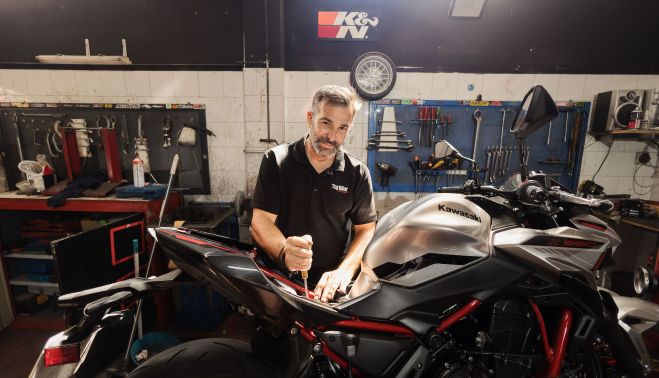 Me gustan las dos cosas. Es verdad que el taller te da la satisfacción de arreglar la moto y que el cliente se vaya contento. Y cuando vendes una moto, pues lo mismo. No me gusta una cosa mucho más que la otra.