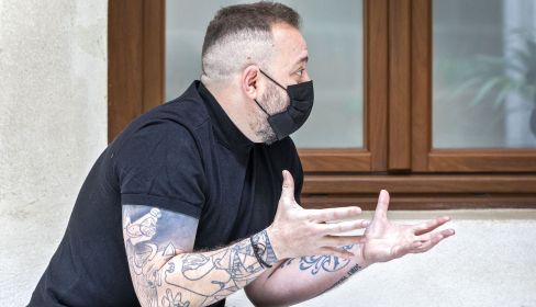 En el banco de un patio del centro cultural se produce la entrevista. Maestre, que viste enteramente de negro —incluida la mascarilla—, luce varios tatuajes. En el brazo izquierdo, la frase “¡Muerte al fascismo, libertad al pueblo!”, pronunciada por el partisano croata Stjepan Filipović poco antes de ser ejecutado por la Guardia Estatal Serbia. En el derecho, una parte del Guernica de Picasso. Criado en Fuenlabrada, una ciudad del cinturón rojo de Madrid, Maestre es conocido por decir siempre lo que piensa, sin importarle las críticas, a las que está acostumbrado. En esta entrevista tampoco se muerde la lengua...