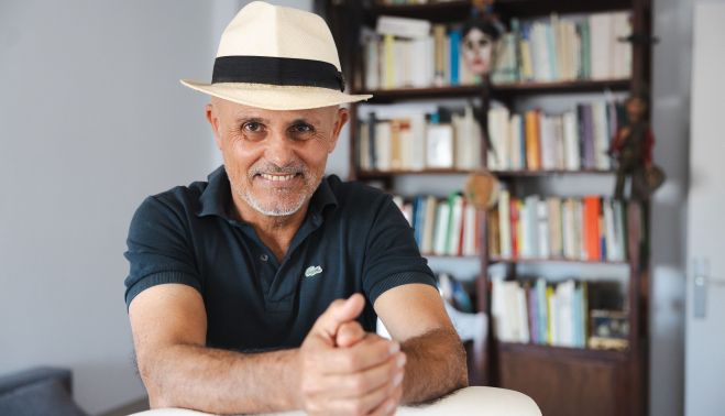 Cumplió 60 años el pasado 2023 y celebra 40 en la poesía este 2024 con la publicación de la antología Los nombres que te he dado (Fundación José Manuel Lara, 2024). Una colección que va de 1983 a 2023, toda su obra publicada y un libro inédito, integrado por un solo poema que se suma a los que conformaban su anterior entrega, el referido La hora del lobo.