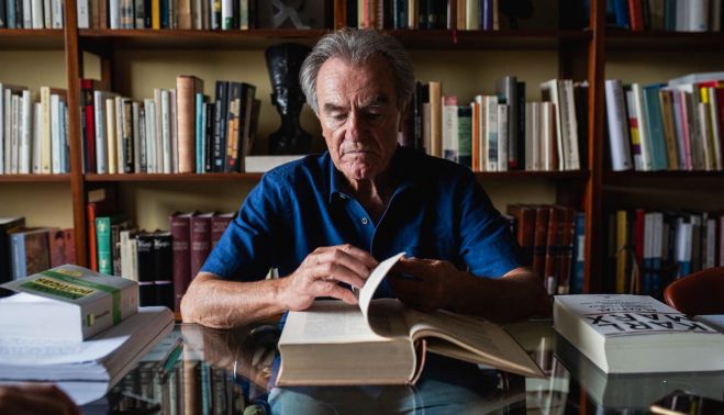 Pérez Royo consulta un tomo sobre sesiones parlamentarias de la Transición. MAURI BUHIGAS