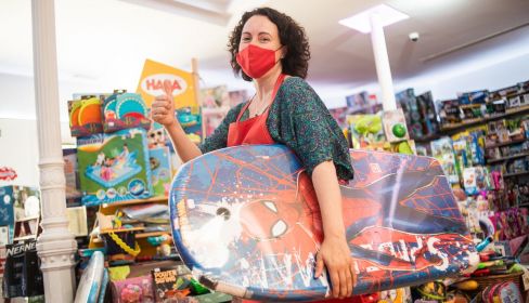 Igual que con el textil renuevas la ropa, en verano se renuevan los juguetes. O te vas a los hinchables o a los juegos de mesa, juguetes para jardín, para la calle... Ya etamos apartando mochilas para el nuevo curso, e incluso apartamos desde verano los juguetes que se llevarán los Reyes Magos. Tenemos al cliente que viene de fuera de Jerez, o el que retorna por vacaciones a su ciudad, y compran aquí porque el comercio en Jerez compite en precio.