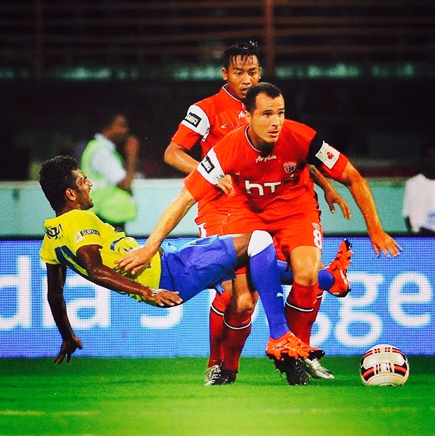 En el Northeast United de la Indian Super League no está solo ya que se ha reencontrado con algunos compañeros con los que compartió vestuario o contra los que se enfrentó. “Todos los de mi equipo son nuevos porque cambié de club. Me he reencontrado con Bruno Perone que estuvo en el Xerez CD conmigo durante la etapa de Javi López. Jofre es otro de los futbolistas que jugó conmigo en el Murcia y Girona. Simao es otro de los compañeros al que conocía de verlo en televisión".
