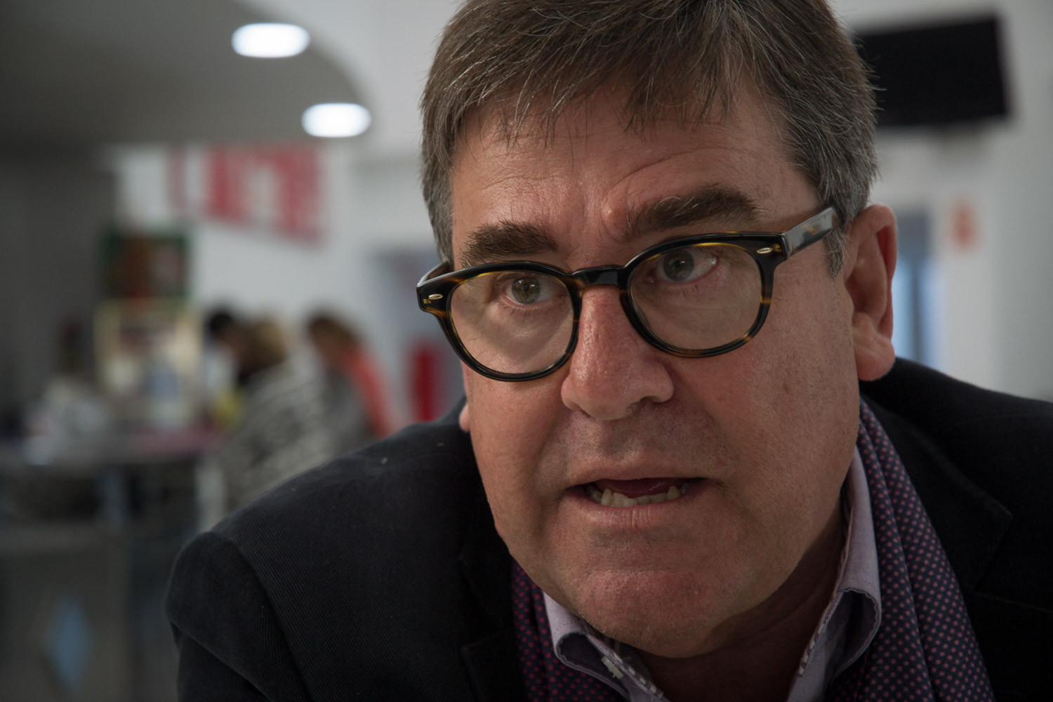 Poco antes de presentar su último libro, El capitalismo en crisis, toma café en la cafetería del campus de la UCA. Chaqueta oscura, pañuelo morado, jersey y camisa debajo, gafas de pasta negra redondas. El profesor Juan Torres (Granada, 1954), aparenta exactamente lo que no es. Un rato de conversación basta para comprobar que “regeneración democrática” y “recuperación social” son expresiones que impregnan su discurso. Ese que le llevó a elaborar, junto al también profesor Vicenç Navarro, el borrador del programa económico de Podemos. Luego llegó el distanciamiento. Catedrático de Teoría Económica de la Universidad de Sevilla y miembro del consejo científico de Attac, Torres visita Jerez por enésima vez. “Hasta estuve en la colocación de la primera piedra de este campus”, recuerda nostálgico mientras posa para las fotos. Luego, se sienta a la mesa y empieza a responder preguntas, con calma, pero firme en sus convicciones.