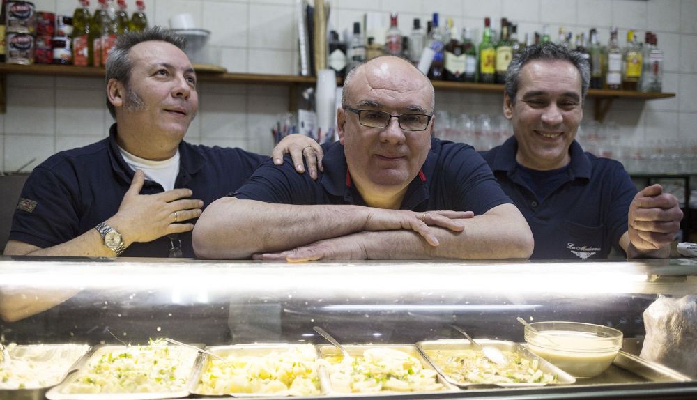 En La Moderna no echan horas, “echamos la vida”, dice Alfonso, que señala: “Sé a qué hora tengo que entrar, lo que no sé es a qué hora me voy a ir a mi casa”. Como sus hermanos, ha pasado toda su vida en el bar. Excepto un pequeño periodo: “Una vez fui marinero y estuve 18 meses haciendo la mili. Fui mano de obra regalada para la Armada Española”, cuenta entre risas. ¿Cuál es el secreto del éxito del negocio? “El trato al prójimo”, señala Alfonso, que apuesta por “tratar a los demás como te gustaría que te trataran a ti”. La idea es que los clientes “sientan que están en la extensión del salón de su casa”.