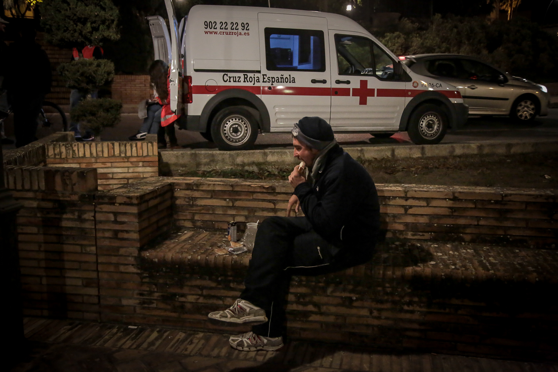 Una noche con los voluntarios de la Unidad de Emergencia Social de la Cruz Roja, que atiende diariamente en Jerez a unos 40 sin techo. "El fin último no es darles el alimento, sino conocerlos, hacer que se sientan personas, saber cuáles son sus problemas e intentar sacarlos de la calle", afirman.