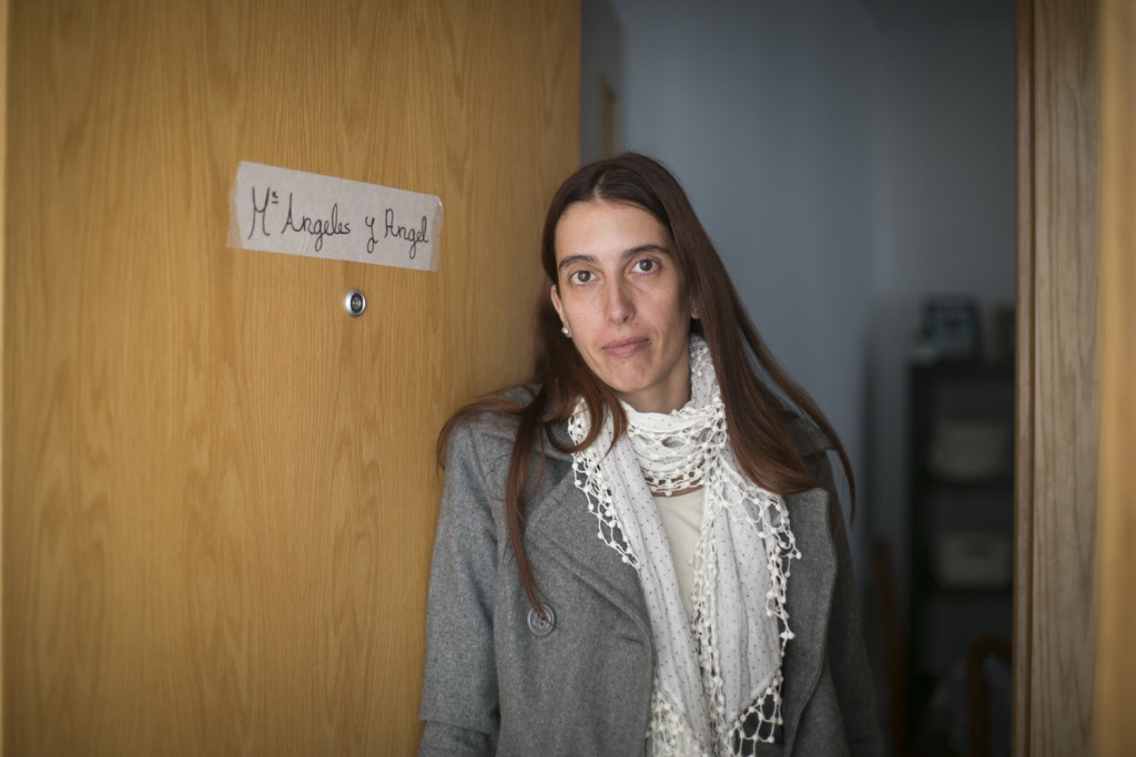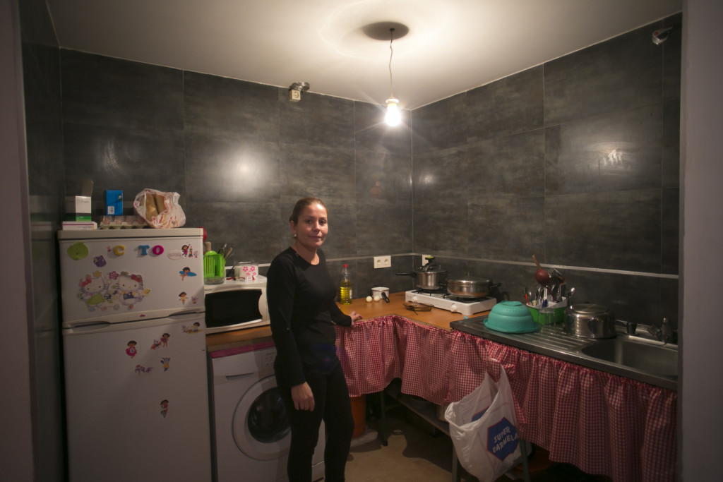 En la pequeña cocina de la vivienda apenas hay mobiliario. Un par de mesas, una estantería, un frigorífico, un pequeño hornillo de butano y una tostadora. A la vista, apenas un bote de cacao en polvo, azúcar y dos o tres botes de plástico con especias. "Todo lo que tengo es dado", dice Mari Ángeles. En el salón hay un par de sofás, un mueble y una televisión. Del techo cuelga una bombilla con un cable pelado. "No tengo ni lámpara, si teneis alguna por ahí…", dice. Fue camarera en un bar, estuvo trabajando en una pizzería y también como dependienta, pero ahora lleva más de un año en paro y ya no sabe qué hacer. "Mis padres están jubilados y muchas veces tengo que ir a su casa a comer. Esto no es vida", explica con tristeza. "Estamos en exclusión social y no tenemos derecho a nada, como estamos de okupas no nos ayudan". Dice que muchas noches se acuesta sin comer. "Anoche por ejemplo no cené, le compré un bocadillo a mi hijo y estuve aquí mirando cómo se lo comía".
