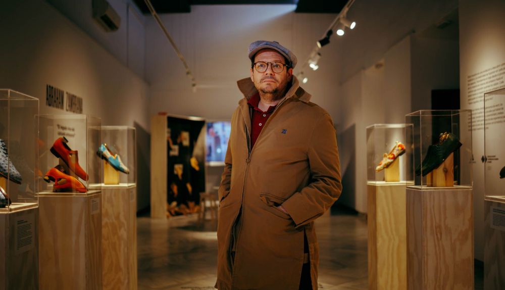 La exposición lleva por título 'Abraham Zambrana: el legado vivo del calzado artesanal'. En la Escuela, se ve, van al grano. El propio zapatero ha seleccionado quince de sus pares (14 zapatos y unas botas, casi todo, salvo dos pares, procedente de las colecciones de sus propios clientes) en una exposición que va más allá de ser un simple muestrario, ya que reúne también distinta maquinaria clásica que Zambrana utiliza todavía para determinados procesos de fabricación. Incluso hay cueros, telas, hormas de clientes reales… materiales todos ellos que están presentes en sus zapatos exclusivos. También se emite continuamente una vídeo-entrevista en la que se cuentan determinados aspectos del proceso de fabricación de sus zapatos y de su trayectoria, para quienes estén interesados en conocer hasta el último detalle.