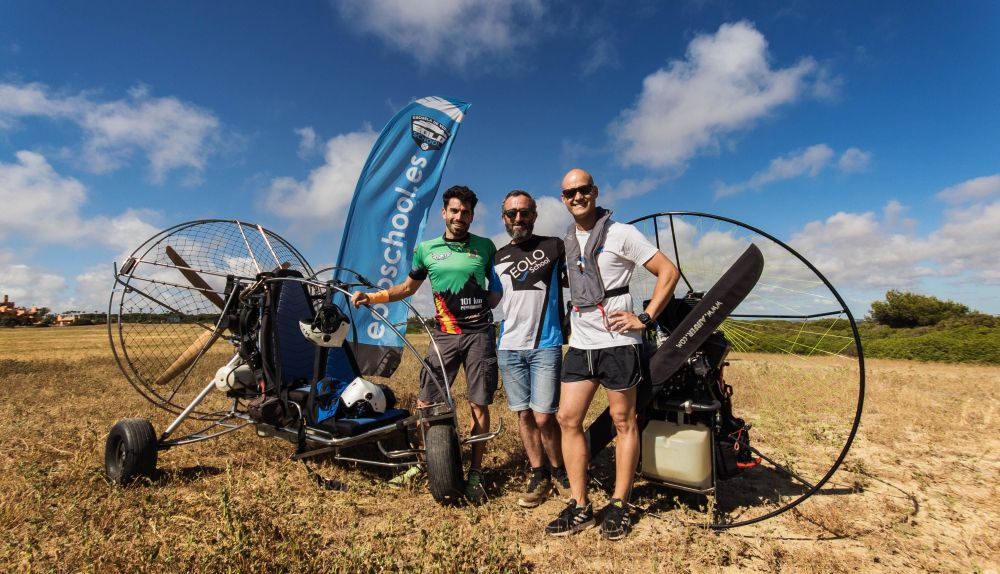 “Acabo de estar en Brasil, voy a Cazorla a hacer una exhibición al público y también a Ibiza con una ONG para volcar con niños con enfermedades”, cuenta a lavozdelsur.es. En su mente ya planea ir a Cuba y a Arabia Saudí, aunque primero toca volar con los alumnos, Raúl y Juanma, que ya ponen a punto sus paramotores.