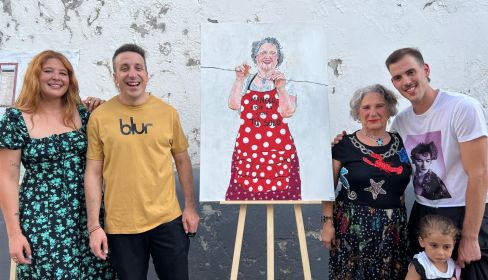 Las pinturas, de mayor formato que los de su anterior exposición, Leche migá, que lo dio a conocer con un estilo colorido y particularísimo centrado en retratos de gente que pasaba de la irrelevancia teórica a la relevancia sentimental por la focalización que él hacía de vecinas muy cercanas o de gente muy marginal, se quedarán expuestas ya en la Casa de la Cultura casi todo el verano. Pero hoy es el Día Internacional del Orgullo LGTB y su charla sin tapujos en la víspera ha constituido en el pueblo un antes y un después en la historia local de los mariquitas. “Me siento muy bien por haber regresado a mi pueblo y haberme enfrentado yo mismo a ciertos miedos a través de mi pintura”, confiesa Víctor Manuel Pérez Morales, que así se llama de paisano el Nieto de Encarna, profeta en su pueblo, redentor histórico de todos aquellos mariquitas históricos de aquí mismo a los que no se les hubiera ocurrido ninguna de estas osadías.