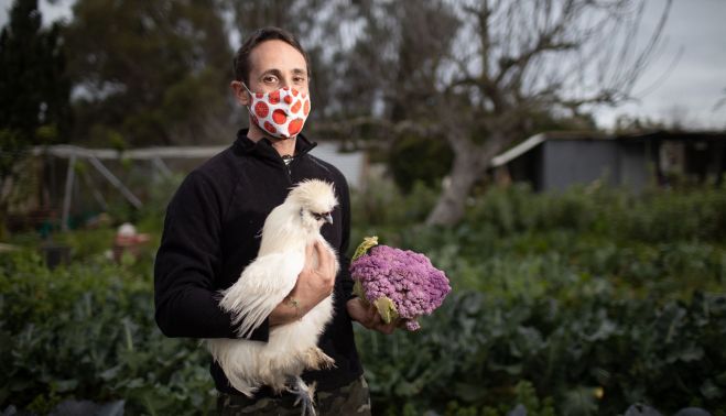 "Desde hace cuatro años soy un referente nacional en el uso de bacterias y hongos en los cultivos naturales”, señala Paco. “Somos lo que comemos”, dice el agricultor, que tiene todo tipo de hortalizas y verduras en su huerto, ubicado en la localidad gaditana de Rota. Paco se autodenomina divulgador medioambiental. En su huerto pone en práctica algunas técnicas que luego enseña, por ejemplo, a futuros chefs dentro de un proyecto en el que ha trabajado recientemente, o en las catas de tomates que realiza cada año. “Cuando la gente prueba los que tengo aquí me dice que no ha comido tomate en su vida. Aquí no forzamos las plantas, es todo natural”, abunda.